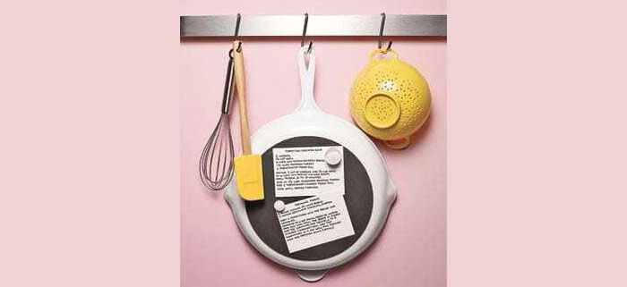 Արդէն իսկ ունինք ոչ կպչուն յատակով նոր տապակ մը, իսկ հի՞նը… զայն կախենք խոհանոցի պատէն եւ մագնիսներու միջոցով անոր վրայ հաստատենք խոհագիրներու բաղադրատոմսեր կամ կարեւոր յուշումներ: