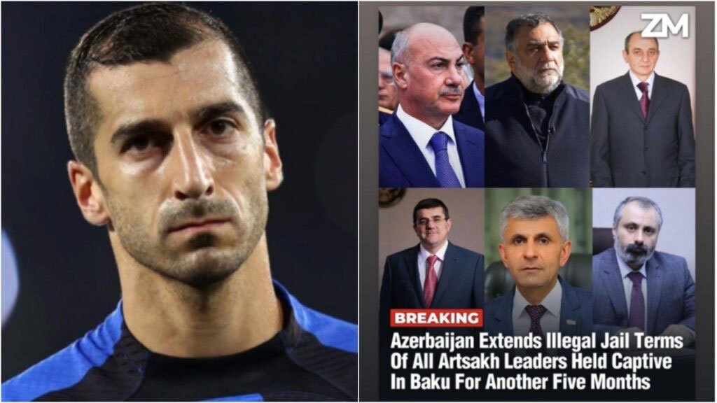 Միլանոյի «Ինթեր»-ի կիսապաշտպան Հենրիկ Մխիթարեան «Ինսթըկրամ»-ի իր էջին գրառումով հակազդած է Ազրպէյճանի կողմէ գերեվարուած եւ ապօրինաբար Պաքուի բանտերուն մէջ շղթայուած Արցախի ռազմաքաղաքական ղեկավարներու բանտարկութեան ժամկէտին` ազրպէյճանական իշխանութիւններու կողմէ երկարաձգման վերաբերեալ լուրին: