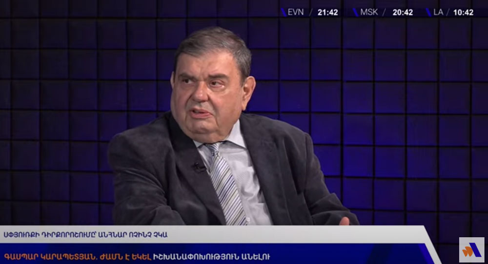 «Ես լաւատես չեմ: Այլեւս անկարելի է երկար ճամբայ երթալ այս իշխանութեան հետ: Տպաւորութիւն է, որ Նիկոլ Փաշինեանը ամէն գնով պիտի փորձէ իր աթոռին վրայ մնալ ու այս իշխանութիւնը պահել: Այս ամէնը շատ վատ է երկրին համար: Եթէ ես Փաշինեանի տեղը ըլլամ եւ հայրենասիրական ջիղ ունենայի իմ մէջս, պիտի փորձէի որեւէ լուծում գտնել», ըսած է Գասպար Կարապետեան: