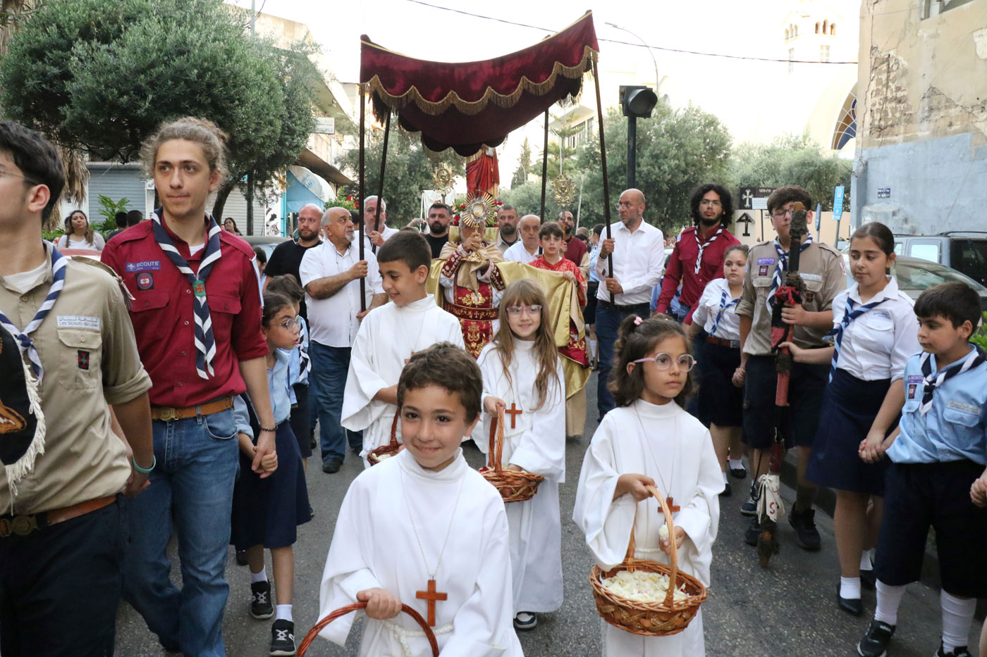 Պատարագէն ետք սուրբ հաղորդութեան հանդիսաւոր թափօրը շրջեցաւ հայաբնակ Պուրճ Համուտի թաղերը օրհնելով անոր բնակիչները` «Ս. Մեսրոպ»-ի սկաուտախումբին եւ «Ս. Փրկիչ» շեփորախումբի նուագներու առաջնորդութեամբ, Յիսուսի Ս. Սրտին կերպարը ներկայացնող արձանն ու խաչվառը ուսամբարձ շալկած էին «Բարեսիրական միութեան» ու «Բարեսէր տիկնանց միութեան» անդամները: Ս. Փրկիչ եկեղեցիէն դէպի Պօղոս Արիս պողոտայ հասնելէ ետք թափօրը թեքուեցաւ դէպի «Սարդարապատ» ակումբին թաղը եւ այնտեղէն ուղղուելով` անցաւ Նոր Մարաշէն դէպի Մեսրոպեան բարձրագոյն վարժարանի շրջափակը: