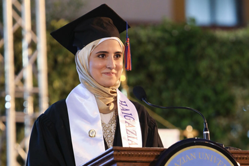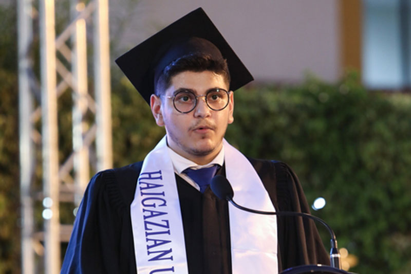 Ուղերձներ արտասանեցին երկու շրջանաւարտներ` Յովիկ Ճեհիզեան (անգլերէն) եւ Տանա Եունես (արաբերէն):