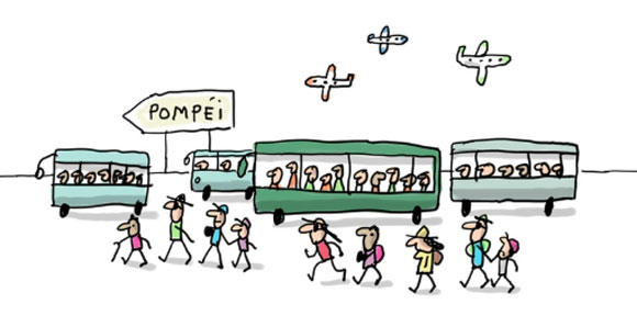 Պոմպէյ, Իտալիոյ Նափոլի քաղաքին մօտ հին քաղաք մըն է, Ք.ե. 79 թուականին մօտակայ Վեզուվիօ հրաբուխին պայթումէն ետք լաւաներուն տակը թաղուեցաւ: Դարեր ետք, 19-րդ դարուն պեղումներու ընթացքին հնագէտներ յայտնաբերեցին այդ քաղաքը, որ հարուստ պատմութիւն մը յուշեց մեզի այդ ժամանակի հռոմէական ընկերութեան եւ կեանքին մասին: Այդ պեղումները տակաւին կը շարունակուին մինչեւ այսօր, եւ այդ նոր պեղումներուն ընթացքին է, որ գտնուած են մօտաւորապէս 2000 տարիներ առաջ գծագրութիւններ… որոնք գծուած են մանուկներու կողմէ: