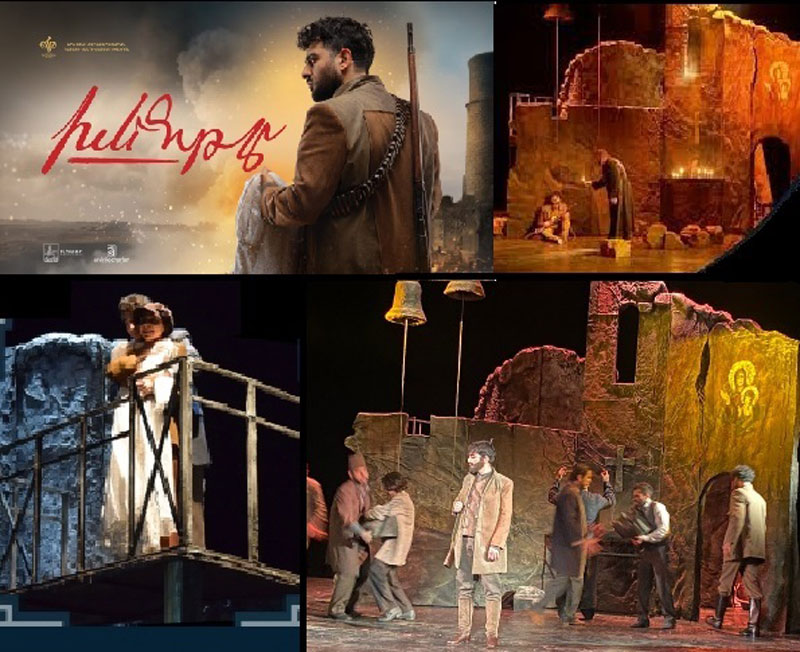Բ.- «Խենթը» Րաֆֆիի համանուն վէպի խորապատկերն է ռուս-թրքական (1877-78) պատերազմը: Հայերու ապաստանած բերդը (Բայազիտ) թրքական քսան անգամ գերակայ զօրքի պաշարումէն փրկելու համար հերոսը` Վարդան (նկատել անունը), խենթութիւն կը ձեւացնէ եւ կ՛անցնի թշնամի բանակի օղակէն: Արարքը իսկապէս որ «խենթութիւն» է, որովհետեւ ամէն պահու կրնար սպաննուիլ: Վէպը գրուած է պատերազմի աւարտէն երկու տարի ետք: Կերպարի նախատիպը կամաւոր Սամսոն Տէր Պօղոսեանն է (1851-1911), որ իսկապէս ծպտուած եւ անցած է թշնամի բանակի մէջէն: Բեմադրիչ Դաւիթ Յարութիւնեան կ՛ըսէ. «Նման խենթերի կարիքն ունի հայրենիքը, ազգը: Այսօր, երբ մեր մէջքը կոտրուած է, ընկճախտի մէջ ենք, ոգեւորիչ խթանների կարիք ունենք»: Թատերակը նախապէս բեմ բարձրացած էր Պատանի հանդիսատեսի թատրոնին մէջ: