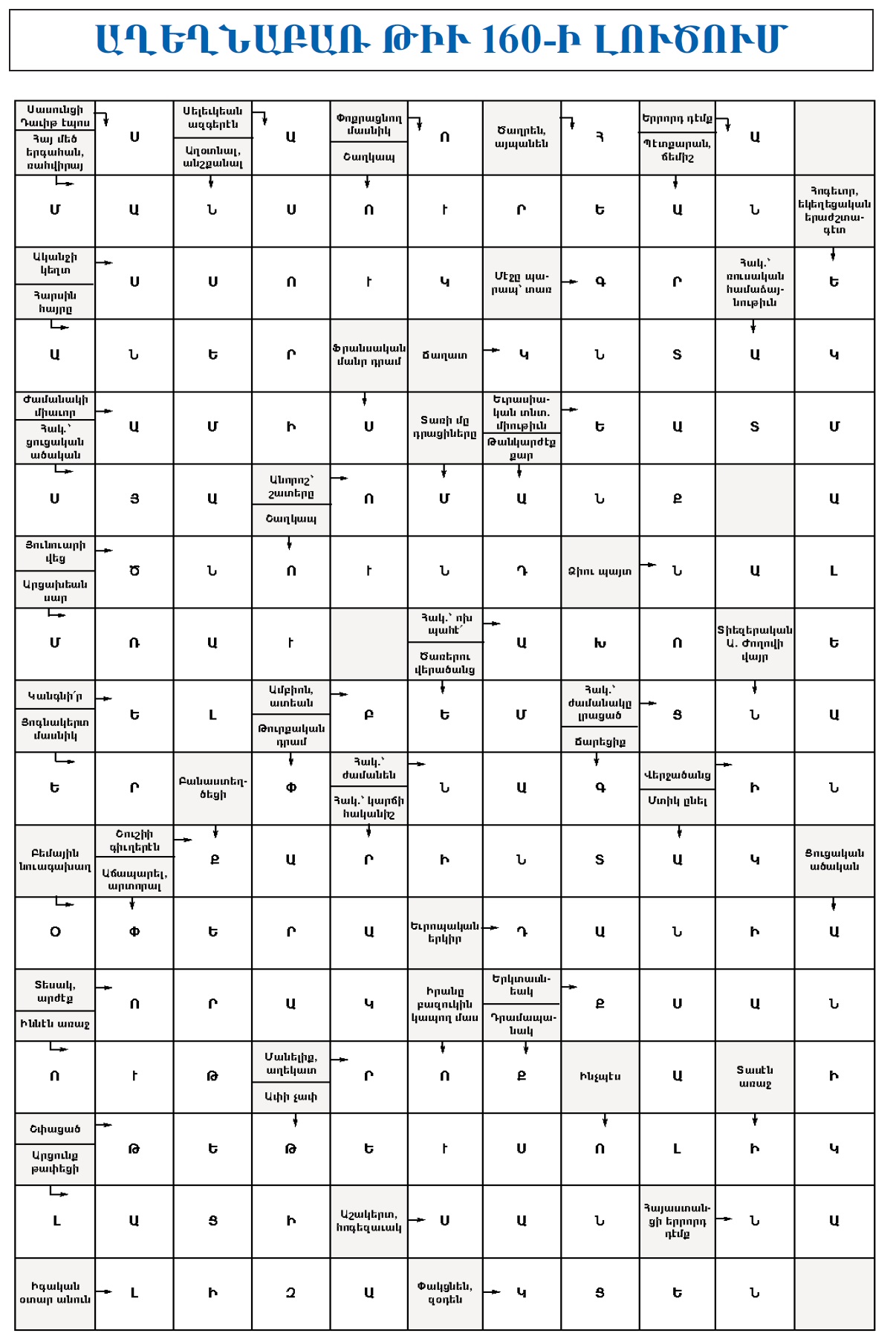 Աղեղնաբառ Թիւ 160-ի Լուծում