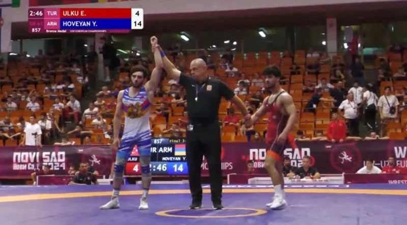 63 քկ կշիռի մրցումներուն, Հայաստանի հաւաքականի անդամ Եուրիկ Յովէեան դարձաւ Եւրոպայի պրոնզէ մետալակիր` յաղթելէ ետք իր թուրք մրցակիցին` 14-4 արդիւնքով: