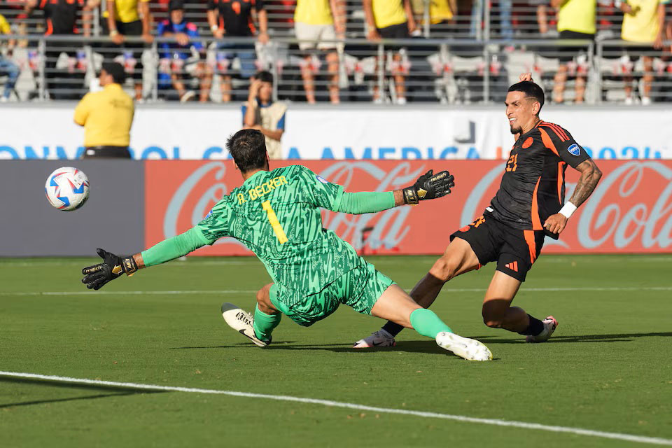 Առաջին 15 վայրկեաններուն Վինիսիուս Ճունիոր դեղին քարտ մը ստացաւ, երբ սխալմամբ հարուածեց Խամես Ռոտրիկեսի ոտքին, գնդակի մը համար պայքարելու ժամանակ, այս պատճառով ալ ան պիտի բացակայի Ուրուկուէյի դէմ քառորդ աւարտականի մրցումէն: Նոյն ազատ հարուածէն Ռոտրիկես քիչ մնաց նշանակէր Քոլոմպիոյ առաջին կոլը, բայց գնդակը քանի մը սանթիմեթր հեռու էր բերդէն: Ռաֆինիայի կոլէն ետք, Տաւինսըն Սանչես գլխու հարուածով կոլ մը նշանակեց, բայց օֆսայտ նկատուեցաւ, քանի մը վայրկեանի ընթացքին ՎԱՐ-ի կողմէ վաւերացուելէ ետք:
