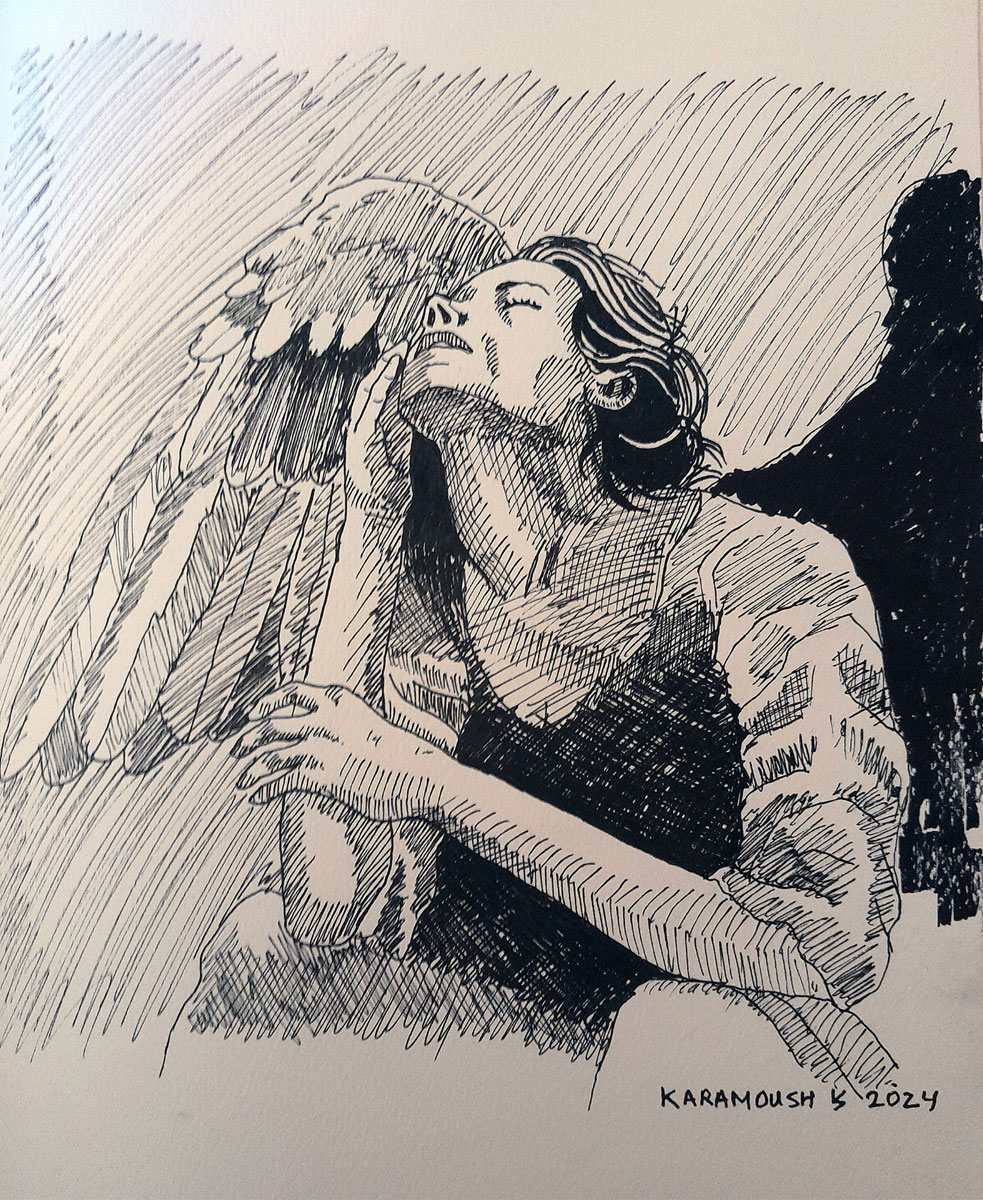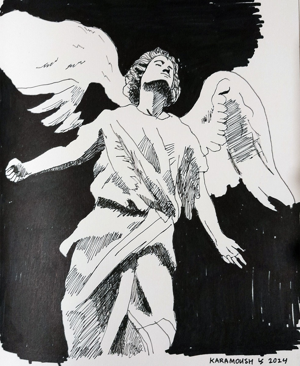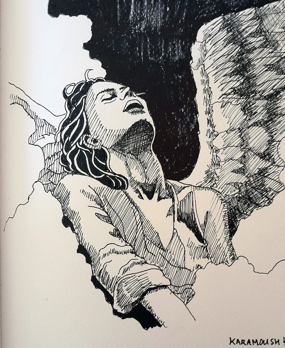 «Պատկերացումներ ունէի երբ գործի սկսայ», կը յայտնէ Գարամուշը. «Մտքիս մէջ ունէի, որ հրեշտակները գերցնծութեան մէջ պիտի ըլլան, սակայն երբ սկսայ գծագրութիւնը կատարելագործել, մէջտեղ ելան տարբեր զգացումներ եւ արտայայտութիւններ, որոնց վրայ գիտակից հսկողութիւն չունէի: Աւելի շատ ենթագիտակցութիւնս էր, որ կ՛արտայայտուէր: Ատիկա նշմարելի եղաւ գործիս աւարտին, երբ նկարները ցուցադրութեան դրի քով-քովի եւ տեսայ, որ, ուա՛ու, նախնականէն տարբեր արտայայտութիւններ կան հոն: Ըստ երեւոյթին, ցաւը շատ էր, քան գերցնծութիւնը: Անշուշտ կան ոմանք, որոնք հանգստութիւն, խաղաղութիւն կ՛արտայայտեն, բայց ցաւ ու տառապանք ալ կայ», կը բացատրէ ան: