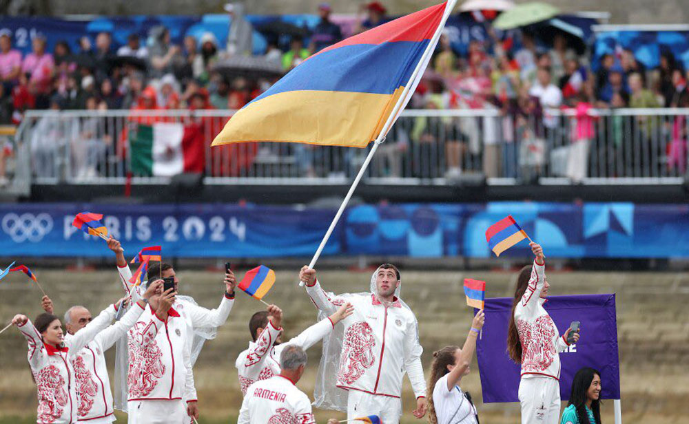 Ողիմպիական խաղերու բացման արարողութեան մասնակից խումբերու շքերթին ընթացքին, երբ Սեն գետէն անցած են հայ մարզիկները, ֆրանսական «Ֆրանս-2» պատկերասփիւռի կայանի հաղորդավարը ուղիղ եթերէն յայտնած է. «Հայերը, ի հարկէ, մեր բարեկամներն են, եւ Հայաստան պատմականօրէն ֆրանսացիներու սրտին մօտիկ երկիր է: