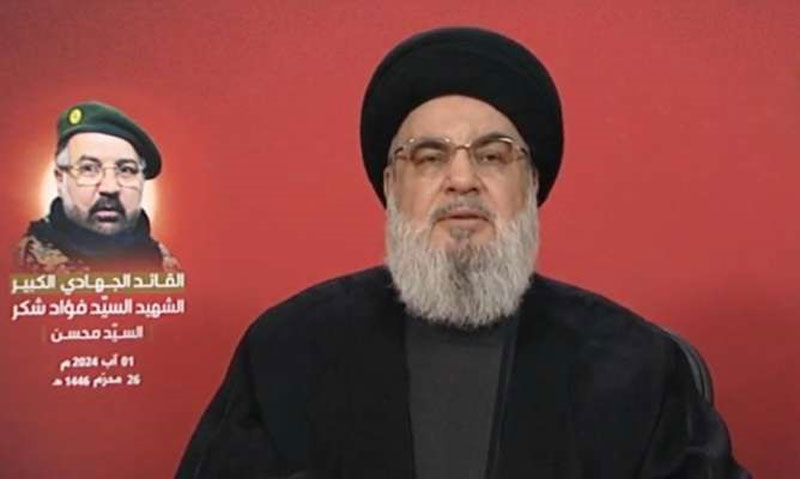 Ան ըսաւ, որ անձնատուութիւնը բացառուած է, եւ միակ լուծումը Կազայի դէմ պատերազմի դադրեցումն է, եւ յայտարարեց, որ Ֆուատ Շուքրի յուղարկաւորութեան համար հարաւային Լիբանանի մէջ դադրեցուած գործողութիւնները այսօրուընէ ի վեր պիտի շարունակուին, սակայն ատիկա Շուքրի ահաբեկման պատասխանը չէ, որ անջատ հարց է եւ որուն օրը հաստատօրէն պիտի գայ: «Թշնամին եւ անոր ետին կանգնողը պէտք է սպասէ մեր պատասխանին, որ պիտի գայ», յայտնեց սէյիտ Նասրալլա` նշելով, որ անիկա իսկական ու լաւապէս սերտուած պիտի ըլլայ, եւ ոչ թէ` ձեւական: