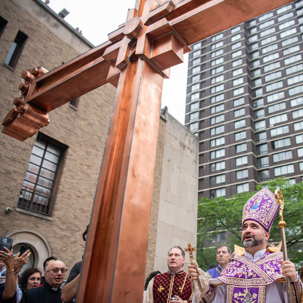 Արդարեւ, 30 յունիսին թեմի առաջնորդ Մեսրոպ եպս. Պարսամեան մատուցեց սուրբ պատարագ եւ աւարտին օրհնեց նոր խաչը եկեղեցւոյ բացօթեայ գաւիթ-հրապարակին վրայ: Առաջնորդ սրբազանը ամփոփ կէտերու մէջ բացատրութիւն տուաւ այս պատմական առիթին մասին` անդրադառնալով Ս. Խաչին իմաստին եւ դերակատարութեան մեր կեանքէն ներս: Քաղաքապետարանին շինարարական ապահովութեան տնօրինութիւններուն համաձայն, խաչը զետեղուեցաւ գմբէթին վրայ նոյն օրը երեկոյեան, խումբ մը հաւատացեալներու ներկայութեամբ: