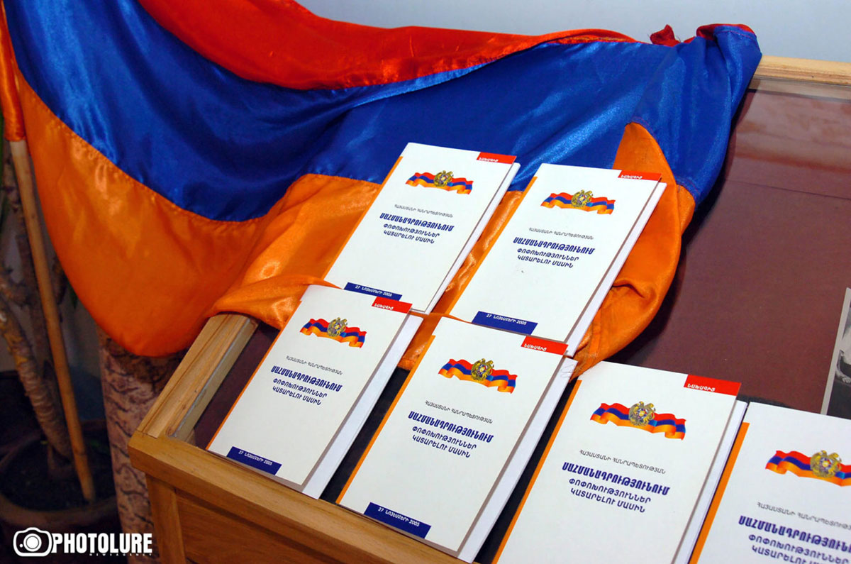 «Հայ ժողովուրդը, հիմք ընդունելով Հայաստանի անկախութեան մասին հռչակագրում հաստատագրուած հայոց պետականութեան հիմնարար սկզբունքները եւ համազգային նպատակները, իրականացրած ինքնիշխան պետութեան վերականգնման իր ազատասէր նախնիների սուրբ պատգամը, նուիրուած հայրենիքի հզօրացմանը եւ բարգաւաճմանը, ապահովելու համար սերունդների ազատութիւնը, ընդհանուր բարեկեցութիւնը, քաղաքացիական համերաշխութիւնը, հաւաստելով հաւատարմութիւնը համամարդկային արժէքներին, ընդունում է Հայաստանի Հանրապետութեան սահմանադրութիւնը»: