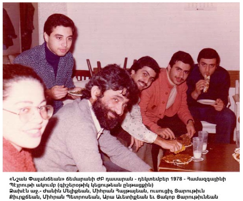 1978-79-ի մեր աւարտական տարեշրջանին, Պէյրութը, քաղաքացիական կռիւներուն հետեւանքով, երկար ատենէ ի վեր բաժնուած էր երկու մասի՝ արեւմտեան եւ արեւելեան (իմա՛՝ իսլամական-պաղեստինեան եւ քրիստոնէական): Ճեմարանը կը գտնուէր արեւմտեանին մէջ, իսկ արեւելեան կողմը կը բնակէին մեծ թիւով աշակերտներ: Վտանգաւոր սահմանագիծը ամէն օր չանցնելու համար, Ճեմարանի տնօրէնութիւնը եւ Համազգայինի վարչութիւնը, որոշ ժամանակ իբրեւ գիշերօթիկ մնալու համար, ձրի, աւարտականներուս տրամադրեց դպրոցին կողքի Համազգայինի շէնքը, միակ պայմանով, որ «լաւ» պահենք… Իսկ 10-րդ եւ 11-րդ դասարանի աշակերտներուն՝ Համազգայինի տպարանի վերեւի շէնքին դասարանները: Հոս ալ պրն. Քիւրքճեանը իր մարդկային եւ մանկավարժական դրական յարաբերութիւնը դրսեւորեց՝ քանի մը ամիսով դպրոցական օրերուն ընտանիքներէն հեռացածներուս «մեծ եղբօր» բարեացակամութեամբ այցելութիւններ տալով, միասին ընթրելով եւ զրոյցներ ունենալով: Կարելի՞ է մոռնալ այս կեցուածքը:
