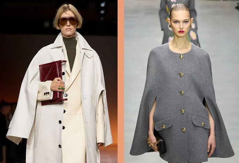 – Թիկնոցներ (յաճախ` միագոյն եւ միջին երկարութեամբ):