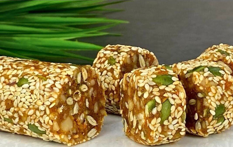 Ամանի մը մէջ լեցնել խարկուած մեղադդումի սերմերը եւ խարկուած ու կտրատուած ընկոյզը: Աւելցնել մանրուած արմաւն ու ծիրանը եւ նարինջի տաշուքը: Խառնուրդը լաւ շաղել` միատարր զանգուած մը ստանալու համար, ապա զայն գլանաձեւ ձեւաւորել եւ խարկուած շուշմային մէջ գլորել ու սառցարան փոխադրել: