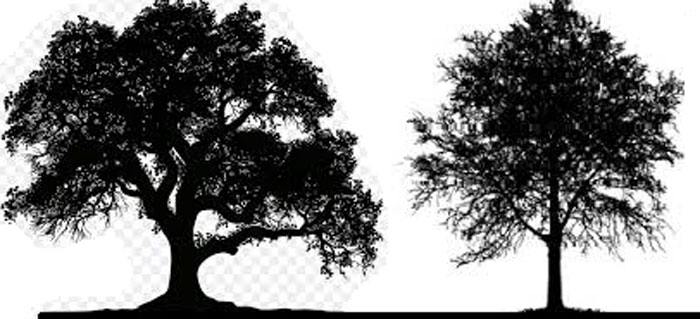 Իրապաշտական.- Անասուններու եւ մեքենական սարքերու ձեւը անփոփոխ չի մնար, երբ մեծնայ անոնց ծաւալը: Կողքի նկարին մէջ երկու ծառերը ներկայացուած են նոյն հասակով: Ընթերցողը անմիջապէս կ՛անդրադառնայ սակայն, որ ձախ կողմի ծառը աւելի հսկայ է, որովհետեւ անոր կոճղը համեմատաբար աւելի հաստ է: Այլ խօսքով, հասակ-տրամագիծ համեմատութիւնը չի պահպանուիր, երբ ծաւալը մեծնայ: