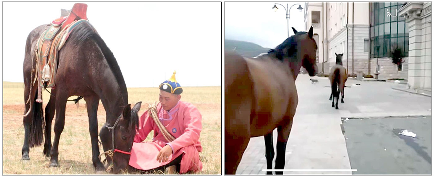 2.Արցախի ցեղասպանութեան պատճառով ամայի Ստեփանակերտի մէջ իրենց տէրերը կորսնցուցած երկու ձիեր եւ շնիկ մը: