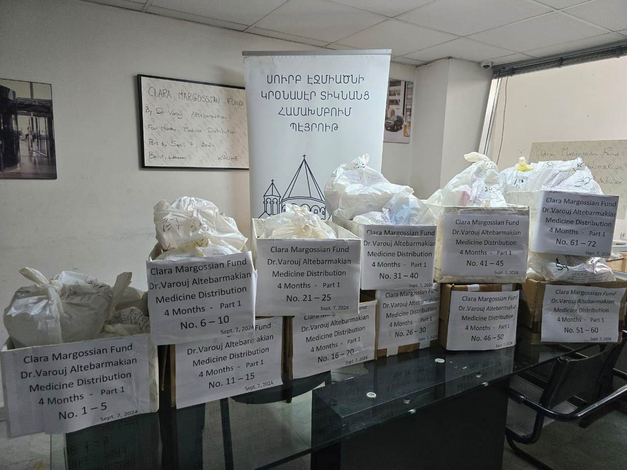Օգոստոս 2024-ին դեղորայք պատրաստուեցաւ եւ մատակարարուեցաւ Թրիփոլի համայնքի 57 անհատներու: Դեղերը պատրաստուեցան անհատական փաթեթներով եւ բժիշկի դեղագիրին համապատասխան` չորս ամսուան օգտագործման համար: