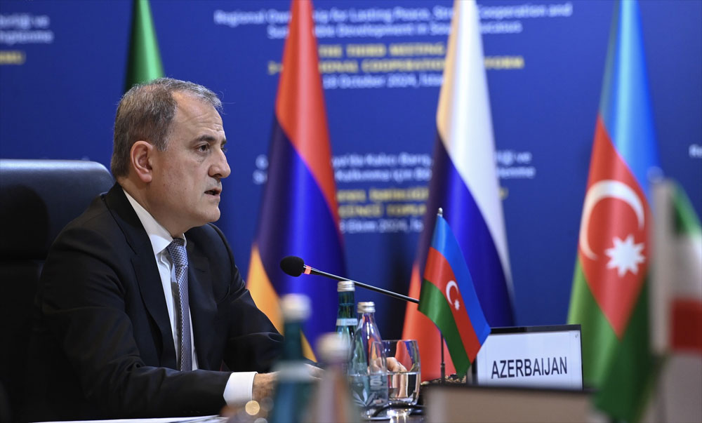 Շրջանին մէջ կայուն խաղաղութեան համար Հայաստանը պէտք է փոփոխութիւններ կատարէ Սահմանադրութեան մէջ, Պոլսոյ մէջ «3+3» հարթակի նիստին ժամանակ ըսած է Ազրպէյճանի արտաքին գործոց նախարար Ճէյհուն Պայրամով: Այս մասին կը հաղորդեն ազրպէյճանական լրատուամիջոցները: