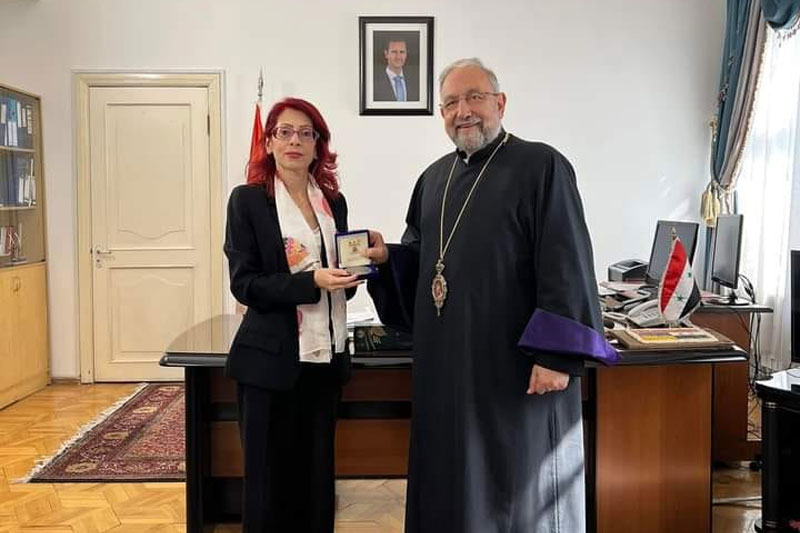 Միրիաթեան աւարտին դեսպան դոկտոր Նորա Արիսեանը պարգեւատրեց «Ներսէս Շնորհալի» յուշամետալով` Հայաստան-Սուրիա յարաբերութիւններու մերձեցման ի նպաստ անոր մատուցած ծառայութիւններուն համար: