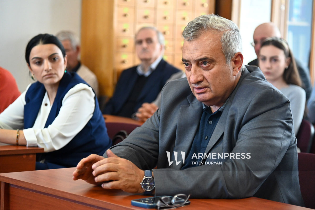 «Անոնք պէտք է կատարեն կանխատեսումներ, որոնց իբրեւ արդիւնք` կը կարողանանք զուգահեռաբար իրականացնել նաեւ պատմագիտական հետազօտութիւններ: Արցախեան հարցը պէտք է քննարկուի նաեւ այն տեսանկիւնէն, որ Ազրպէյճանը երանութեան մէջ կը շարունակէ ինքզինք պահել շատ աւելի շնական ու լկտի` յայտարարելով, որ արցախեան հարցը լուծուած է: Փորձելով, այսպէս կոչուած, նախկին բնակիչներուն վերադարձնել Հայաստան` հարիւր հազարներէ աւելի, քան իրականութեան մէջ անոնք եղած են այստեղ, կը ձգտի գործընթացը շարունակել` զուգահեռաբար մէջտեղ բերելով, այսպէս կոչուած, «Զանգեզուրի միջանցք»-ի թեման: Ազրպէյճանը անով իսկ չի դադրեցներ հայ-ազրպէյճանական յարաբերութիւններուն մէջ լարուածութեան ընթացքը», նշեց Մելքոնեան: