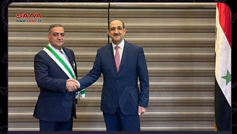 Շքանշանը դեսպանին յանձնեց Սուրիոյ արտաքին գործոց նախարար Պասամ Սապպաղ: