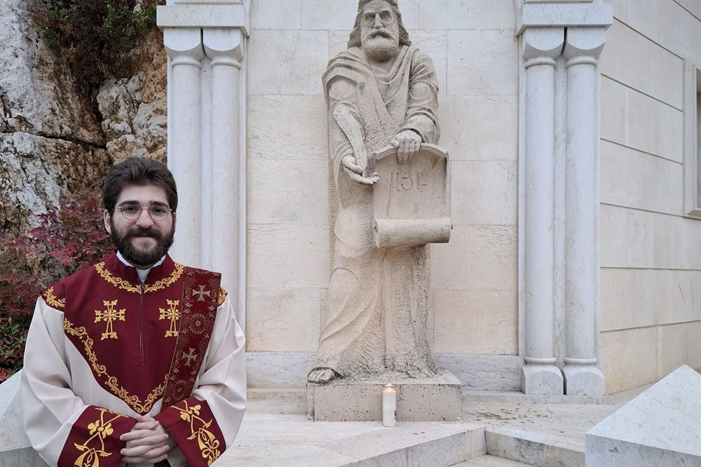 Տաճար մըն էր անպաճոյճ` մութ եւ սեւաթորմի: Բեմին տակ աննշան նկուղէ մը տարտամ լոյս մը կու գար. ո՛րքան մօտեցան, ա՛յնքան յստակացաւ, ա՛յնքան պայծառացաւ… Յեղակարծօրէն, համակ դասն ծունկի եկաւ` շշմած եւ արտասուաթոր…. Ո՜հ, ի՛նչ հրաշալի պատկեր. ալեւոր հոգեւորական մը ձախ ձեռքը կուրծքին վրայ հանգչեցուցած էր, աջը գրիչ մը բռնած մագաղաթ կը ծաղկէր, իսկ պսպղան աչուըներն` ամենեւին առինքնուած եւ երկնապիշ, անմատոյց Լոյսը կը փառաւորէին… Եւ դարձաւ այդ սուրբը դէպի իր աշակերտներն հաւատարիմ եւ ըսաւ. «Պի՛նդ կալարուք զաւանդն, զոր ընկալայք ի մէնջ»: Եւ տուաւ առկայծ լուցան մը եւ օրհնելով արձակեց իր հաւատարիմ աշակերտները: Այդ լուցանը մի՛շտ կը վառի, ցորքան ժամանակս հայը կ’ապրի…