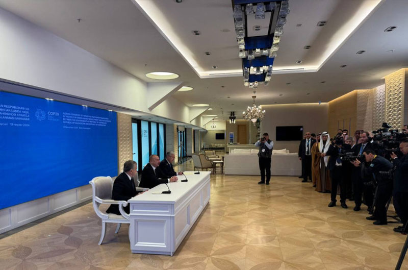 Պաքուի մէջ տեղի ունեցած է Ազրպէյճանի, Ղազախստանի եւ Ուզպեքիստանի ղեկավարներու հանդիպումը: Ատոր ընթացքին նախագահները համաձայնագիր ստորագրած են երեք երկիրներու կառավարութիւններուն միջեւ Կասպից ծովու երկայնքին կանաչ ուժանիւթի զարգացման եւ փոխանցման գործին մէջ ռազմավարական գործընկերութեան մասին: