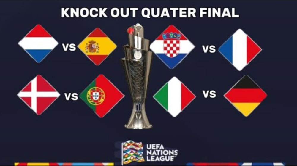 Ա. կարգի քառորդ աւարտականին Եւրոպայի ախոյեան Սպանիա, որ թիւ 1 դասուած խումբ էր Ազգերու լիկայի արդիւնքներուն հիման վրայ, պիտի մրցի թիւ 6 դասուած Նետերլանտներուն դէմ, այս վերջինիս դաշտին վրայ, երթին, 20 մարտին, ապա 3 օր ետք Սպանիոյ մէջ, դարձին: