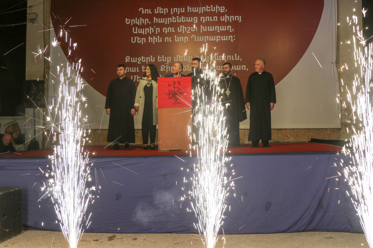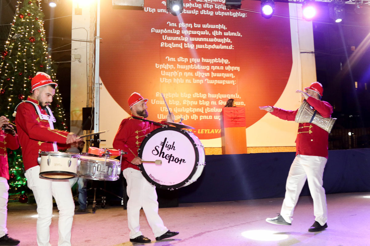 Բացման խօսքը արտասանեց Սեւան Ադամեան, որ մէկ վայրկեան յոտնկայս լռութիւն յայտարարեց` յարգելու յիշատակը 1988-ի աղէտալի երկրաշարժի զոհերուն: Ապա հրաւիրեց սրբազան հայրն ու քահանայ հայրերը, ինչպէս նաեւ շրջանի ՀՅԴ «Է. Ակնունի» կոմիտէի ներկայացուցիչ Արծիւ Տէր Խաչատուրեանը, որպէսզի միասնաբար լուսաւորեն տօնածառը: