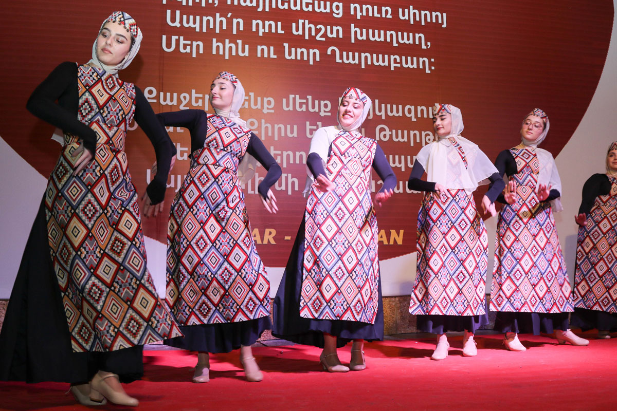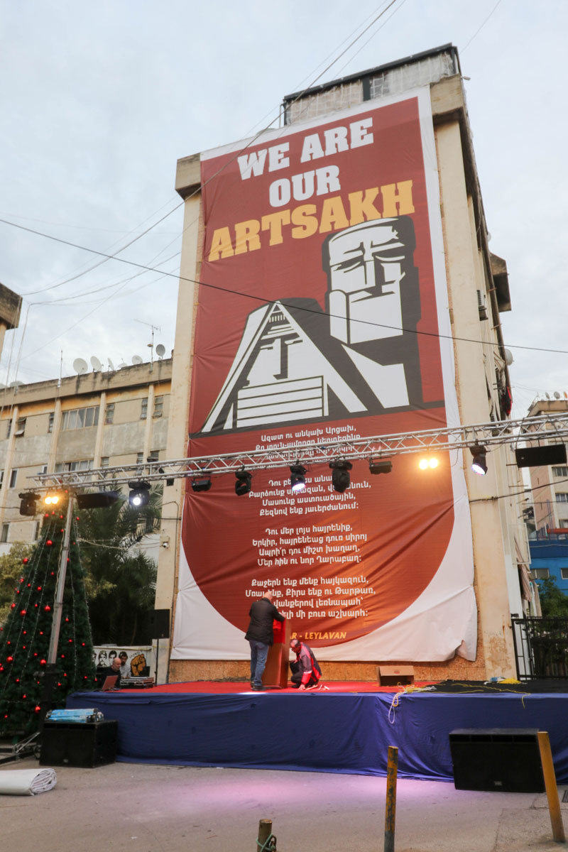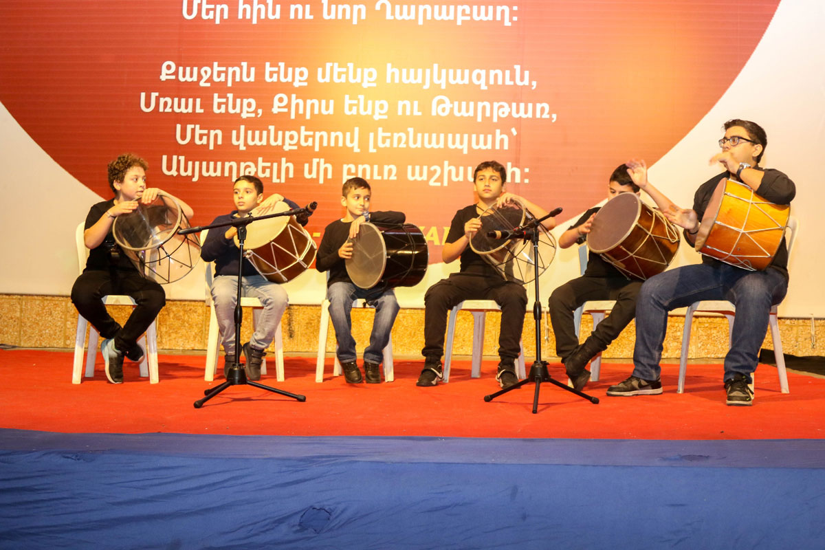 Բեմի պատին մեծ պաստառի վրայ հաստատուած էր Արցախ աշխարհի «Մենք ենք մեր սարերը» (Մամիկն ու Պապիկ) կոթողի նկարը եւ Արցախի Հանրապետութեան քայլերգը` յուսալով ու հաւատալով, որ օր մը իրականութիւն պիտի դառնայ բոլորիս երազը: