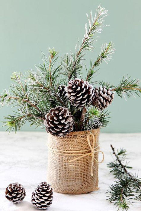 Ե.- Սոճիի ճիւղերով յարդարանք, որուն համար անհրաժեշտ են` մետաղեայ պահածոյի պարապ տուփ մը, սնոպրիի ողկոյզներ եւ այլն…
