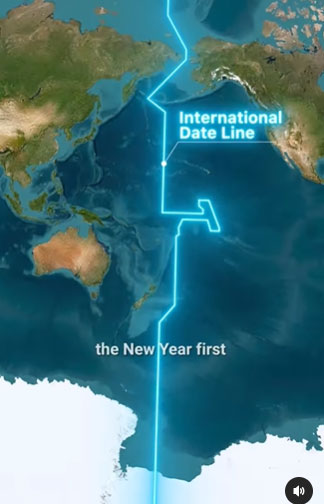 Մեր երկրագունդը բաժնուած է 24 ժամային գօտիներու, որոնց հիմամբ կ՛որոշուի նոր օրուան մը ծնունդը: Այս նոր օրը կը սկսի Միջազգային ամսաթուի գիծին վրայ եւ դէպի արեւմուտք կը շարունակուի: Հետեւաբար այդ գիծին ամէնէն մօտ երկիրը առաջինը կ՛ըլլայ Նոր տարին տօնող: Այդ երկիրը Քիրիպաթի պզտիկ կղզին է: Իսկ Նոր տարին տօնող ամէնէն վերջին երկիրը Ամերիկեան Սամոա կղզիներն են: Այս կղզիները շատ մօտիկ են Քիրիպաթիի: Սակայն անոնք կը գտնուին Միջազգային ամսաթուի գիծին միւս կողմը` ստեղծելով երկու շրջաններուն միջեւ 24 ժամուան տարբերութիւն մը: