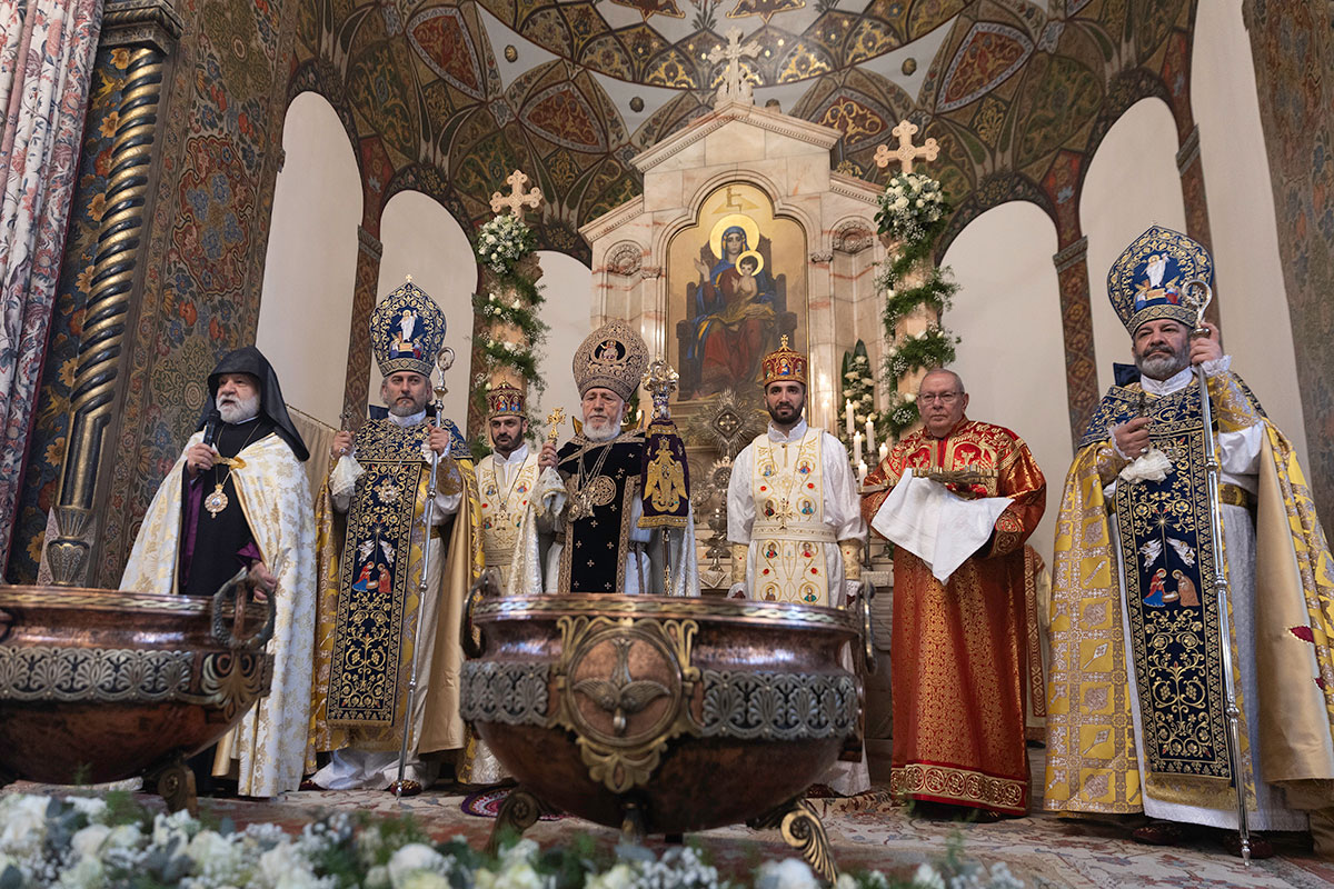 Յաւարտ սուրբ պատարագի` կատարուեցաւ ջրօրհնէքի արարողութիւնը: Սուրբգրային ընթերցումներէ, ջրօրհնեաց շարականներու երգեցողութենէ եւ Բարսեղ Մեծի աղօթքէն ետք Ամենայն հայոց կաթողիկոսը խաչով եւ սրբալոյս միւռոնով օրհնեց ջուրը: