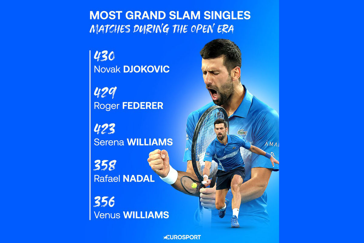 Թենիսի պատմութեան ամէնէն շատ տիտղոսակիր թենիսմեն Նովաք Ճոքովիչ երէկ մրցանիշ մը եւս իրագործեց, երբ Աւստրալիոյ թենիսի բաց մրցաշարքին բարելաւեց զուիցերիացի Ռոժէ Ֆետերերի մրցանիշը` կատարելով 430-րդ մրցումը կրան շլեմի մրցաշարքերուն գծով: