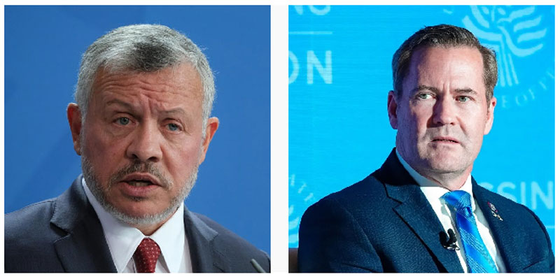 Յորդանանեան արքունիքը հաղորդագրութիւն մը հրապարակելով հաղորդեց, որ Յորդանանի Ապտալլա Բ. թագաւորը հեռաձայնած է Միացեալ Նահանգներու ազգային անվտանգութեան խորհրդատու Մայք Ուոլցին եւ անոր հետ քննարկած Յորդանանի ու Միացեալ Նահանգներու միջեւ ռազմավարական գործընկերութեան ամրապնդման կարելիութիւնները: