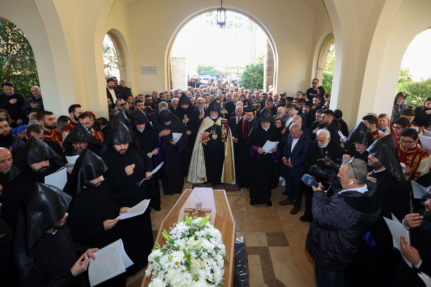 Օրհնութեամբ Արամ Ա. վեհափառ հայրապետին, երեքշաբթի, 4 փետրուար 2025-ի առաւօտեան, հայկական աւան Այնճարի Ս. Պօղոս եկեղեցւոյ մէջ, յընթացս սուրբ եւ անմահ պատարագի մատուցման, կատարուեցաւ հոգելոյս հայր սուրբին վերջին օծման արարողութիւնը` ձեռամբ Լիբանանի հայոց թեմի առաջնորդ Շահէ արք. Փանոսեանի, մասնակցութեամբ միաբան հայրերու, թեմի քահանայից դասուն ու դպրեվանեցիներու եւ ներկայութեամբ հիւր հոգեւորականներու ու բազմաթիւ հաւատացեալներու: Միաբան հայրեր, իրենց վաղամեռիկ ուխտակից եղբօր դագաղը շրջապատած, առ Աստուած կը բարձրացնէին իրենց աղօթքները` Աւետարանի ու սաղմոսի ընթերցմամբ: Հասաւ այն պահը, երբ անոնք ուսամբարձ Սուրբ խորան բերին հոգելոյս հայր սուրբը, որպէսզի ստանար իր վերջին օծումը: