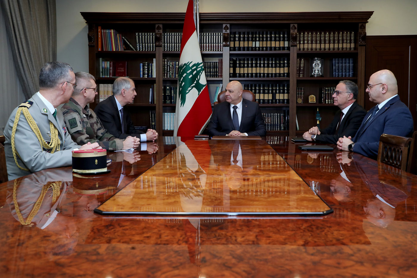 Հանրապետութեան նախագահ զօր. Ժոզեֆ Աուն Պաապտայի պալատին մէջ ընդունեց Լիբանանի մէջ Ֆրանսայի դեսպան Էրվէ Մակրոն եւ զինադադարի հսկողութեան յանձնախումբի փոխնախագահ ֆրանսացի զօրավար Կիոմ Պոշանը: