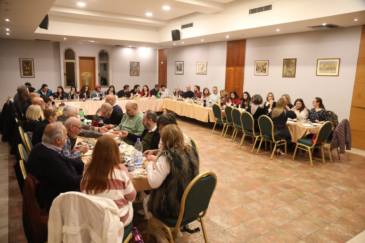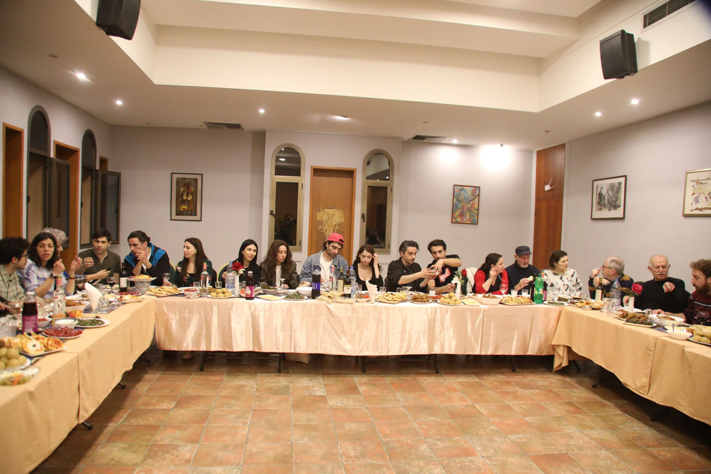 Հրաւէրով Համազգայինի Լիբանանի Շրջանային վարչութեան եւ ի պատիւ Համազգայինի «Գասպար Իփէկեան» թատերախումբի վարչութեան նախաձեռնութեամբ Լիբանան ժամանած Սօս Սարգսեանի անուան Համազգայինի պետական թատրոնի պատուիրակութեան, երեքշաբթի, 11 մարտ 2025-ին, երեկոյեան ժամը 8:30-ին Համազգայինի «Լեւոն Շանթ» մշակութային կեդրոնի «Գ. եւ Հ. Արմէնեան» սրահին մէջ տեղի ունեցաւ մտերմիկ ընթրիք, մասնակցութեամբ Համազգայինի Կեդրոնական վարչութեան, Գեղարուեստի դպրոցներու խնամակալութեան եւ մասնագիտացած մասնաճիւղերու ներկայացուցիչներուն, գեղարուեստի ղեկավարներուն, տիկնանց յանձնախումբին եւ համազգայնականներու: