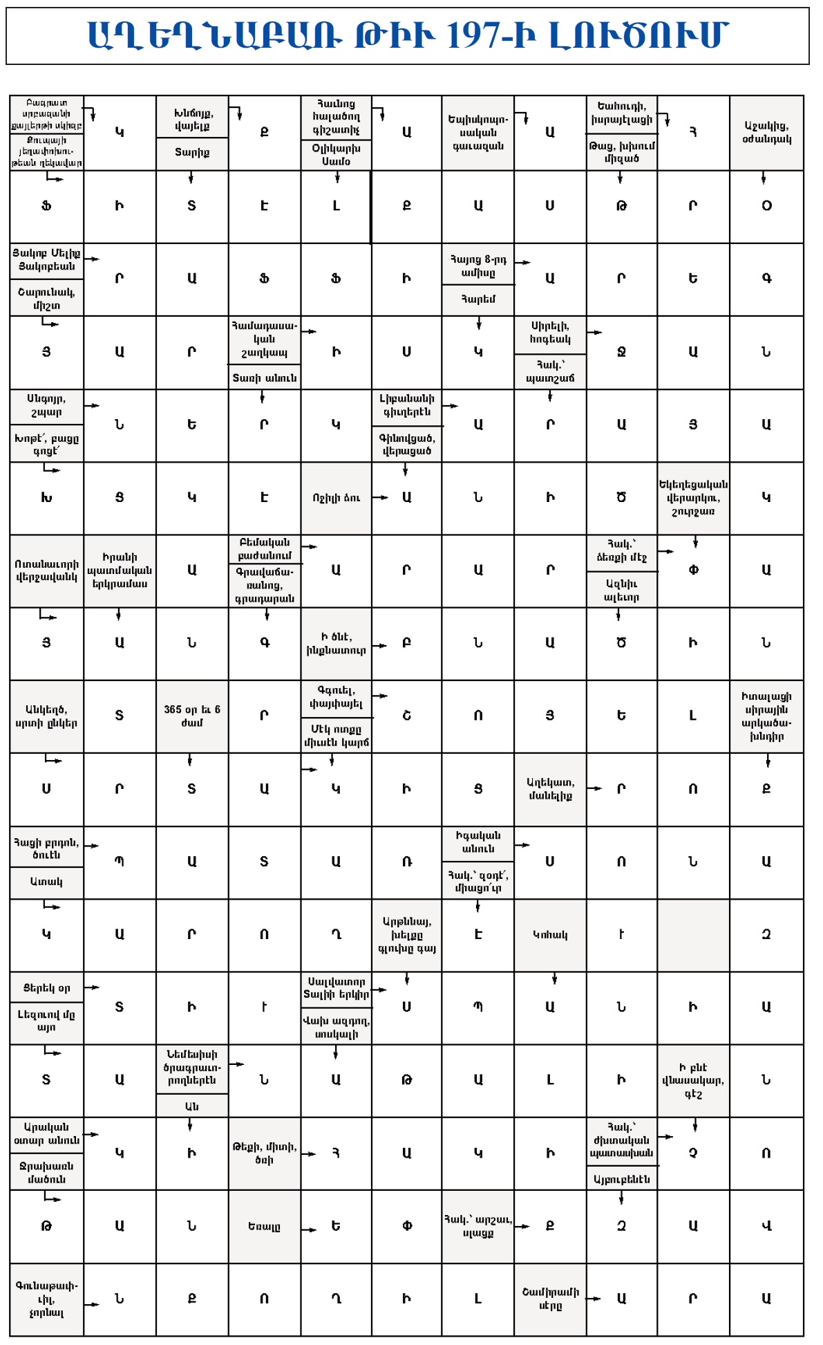 Պատրաստեց՝ <strong>ՆԱՆՕՐ ԳՈՉՈՒՆԵԱՆ-ԹԱՇՃԵԱՆ</strong> <a href="https://www.aztagdaily.com/wp-content/uploads/2025/03/agheghnapar-tiv-197-loudzoum.jpg"><img class="aligncenter size-full wp-image-644881" src="https://www.aztagdaily.com/wp-content/uploads/2025/03/agheghnapar-tiv-197-loudzoum.jpg" alt="" width="1191" height="1945" /></a>