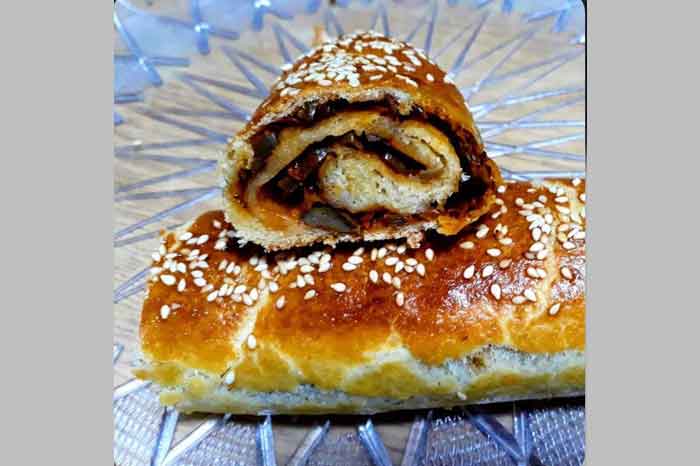 Իւրաքանչիւր գունդ 1 սմ հաստութեամբ գլանով բանալ եւ վրան տարածել միջուկը, ապա ոլորել ու ափսէին մէջ փոխադրել: Ոլորուած խմորները իրարմէ քիչ մը հեռու շարել, իւրաքանչիւրին երեսը հաւկիթի դեղնուցով ծեփել ու շուշմայ ցանել: