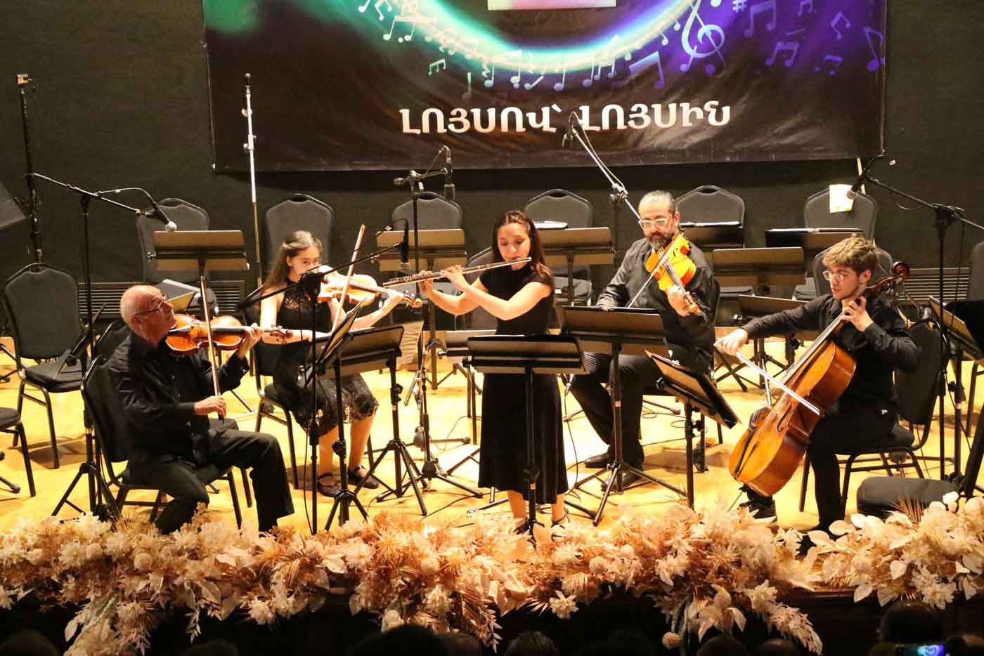 Ելոյթի առաջին բաժինով բեմ բարձրացաւ «Մեղեդի» լարային քառեակը, որ նուագեց` Գրիգոր Նարեկացիի երկու ջութակի համար «Տաղ» ստեղծագործութիւնը, Վիվալտիի 4 ջութակի եւ դաշնամուրի համար «Քոնչերթօ»-ն, Կոմիտաս-Ասլամազեանի «Երկինքն ամպել ա», «Ալ այլուղս» եւ «Հոյ նազան» գործերը, Պախի «Ռոնտօ, Մենուէթթօ, Պատիների»-ն (Սրինգ` Կասիա Լեւոնեան), Հենտըլի «Շեպա թագուհիին ժամանումը», Պրամսի «Հունգարական պար թիւ 5»-ը եւ Աշոտ Ճէնտէրէճեանի մշակած «Ֆիննական փոլքա»-ն: Քառեակի ղեկավար` Արմէն Ճէնտէրէճեան: