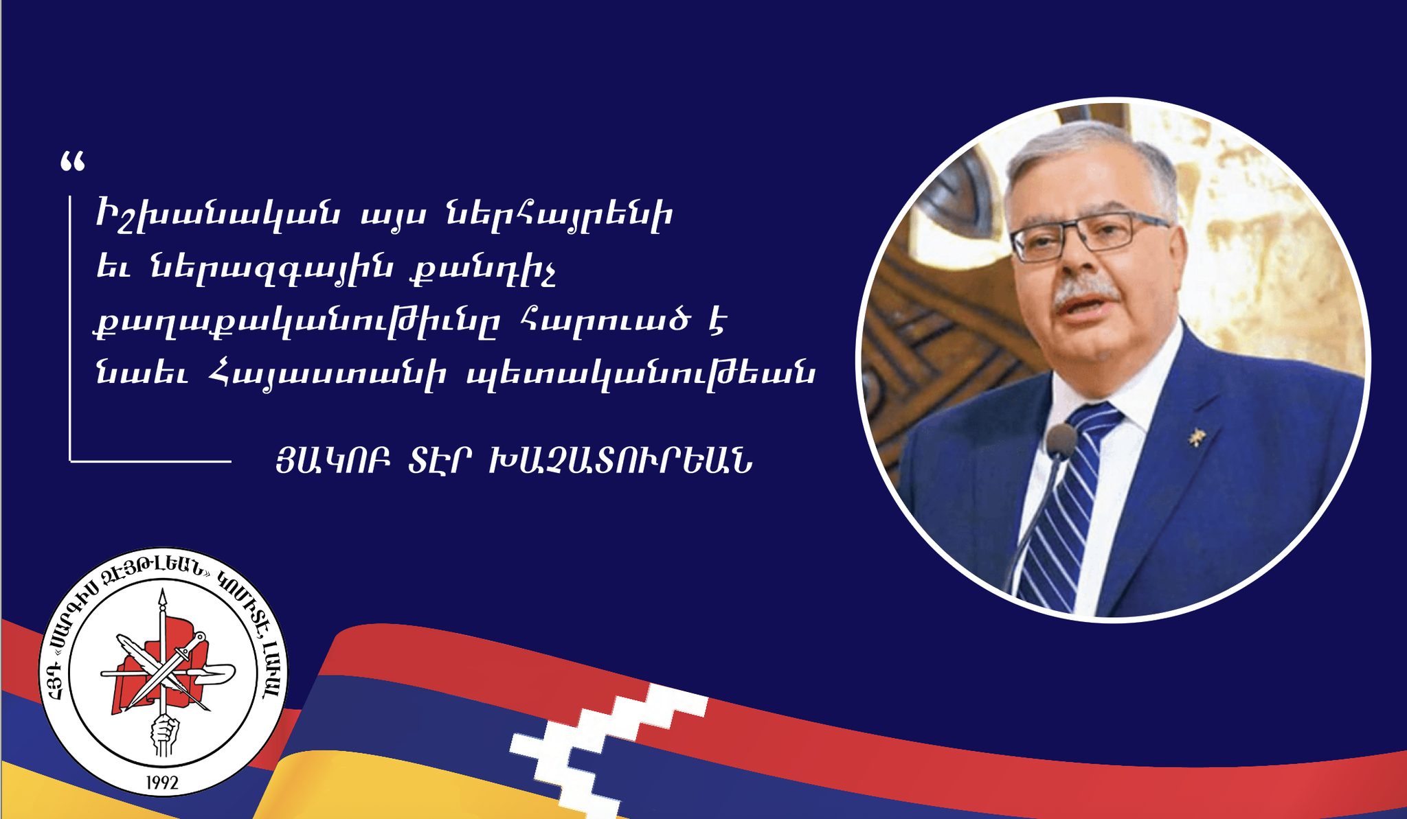 Իշխանական այս ներհայրենի եւ ներազգային քանդիչ քաղաքականութիւնը հարուած է նաեւ Հայաստանի պետականութեան: Անընդունելի է, որ այս ճգնաժամային ժամանակահատուածին երբ Թուրքիա եւ Ադրբէջան խնդրոյ առարկայ կը դարձնեն հայրենիքի լինելիութիւնն անգամ, Հայաստանի իշխող խմբակը յատուկ ճիգով շարունակէ առաջ տանիլ հայութիւնը պառակտելու, վախի ու սարսափի մթնոլորտի տարածումով ամէն տարակարծութիւն լռեցնելու եւ բռնատիրական միջոցներով ժողովրդավարութիւնը եւ մարդկային տարրական իրաւունքները ոտնահարելու քաղաքականութիւնը: