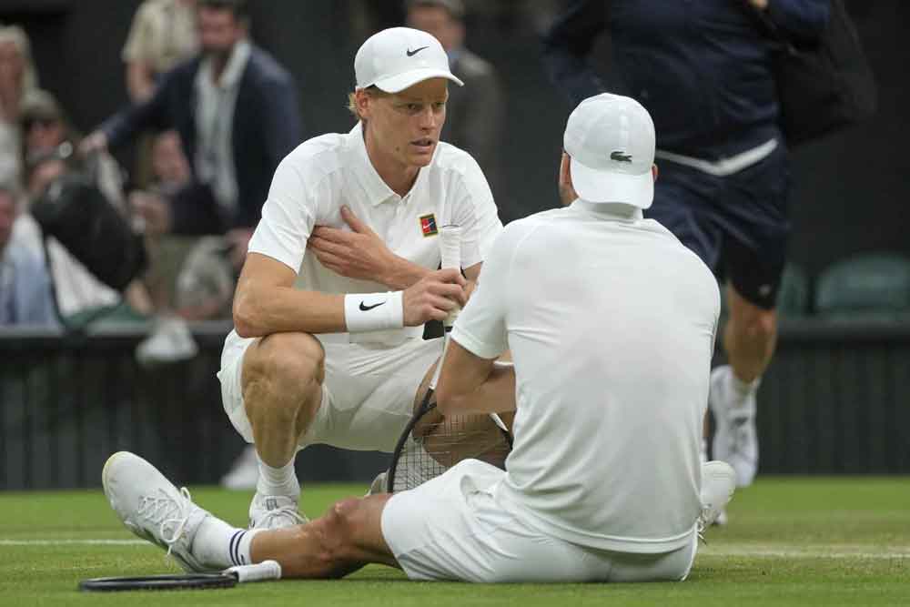 Ուիմպըլտընի թենիսի մրցաշարքը կը շարունակուի, եւ աշխարհի թիւ 1 թենիսմեն Եանիք Սինըր 2 ժամ թենիսէ ետք կ՛ուղղուէր պարտութեան, բայց իր մրցակից Կրիկոր Տիմիթրով անակնկալ ձեւով վիրաւորեց իր ուսին մէկ մկանը էյս մը կատարելէ ետք եւ լքեց մրցումը: Թիւ 21 թենիսմեն պուլկարացի Տմիթրով, որ բարձր մակարդակի թենիս կը խաղար, իր կիսատ լքած մրցումներու թիւը հասցուց 5-ի: