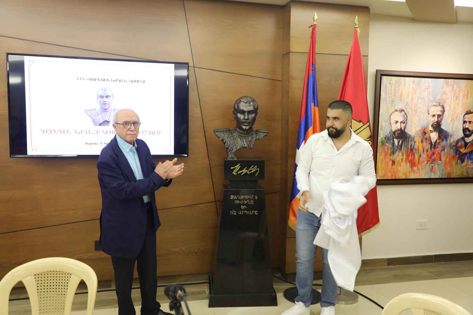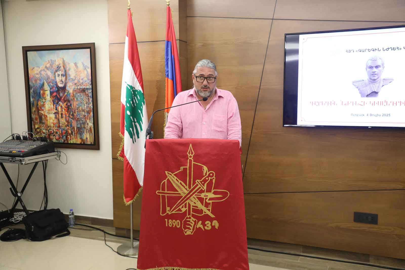 Անկէ ետք խօսք առաւ «Գարեգին Նժդեհ» կոմիտէի ներկայացուցիչ Գրիգոր Հաշէօլեան, որ ընդգծեց Նժդեհի բացառիկ տեղը մեր պատմութեան մէջ` իբրեւ անմար հոգիի, անվախ պայքարի եւ նուիրումի խորհրդանիշի: Ան ներկայացուց կոմիտէին նախաձեռնած երկու ծրագիրները. նախ` Նժդեհի «Որդիներու պայքարը հայրերի դէմ» գիրքի վերահրատարակութիւնը, որմէ 1500 օրինակ տրամադրուեցաւ հայկական վարժարաններ յաճախող 10-րդ, 11-րդ, 12-րդ կարգերու աշակերտներուն, ինչպէս նաեւ` հայոց լեզուի եւ Հայոց պատմութեան դասատու ուսուցիչներուն: Երկրորդը Նժդեհի կիսանդրիին զետեղումն է` շնորհիւ բարերար Յակոբ Լօշխաճեանի կատարած մեկենասութեան եւ քանդակագործ Վարդան Աւեսեանի տաղանդին: Հաշէօլեան շեշտեց, որ այս կիսանդրին պիտի դառնայ ոչ միայն Նժդեհի ֆիզիքական ներկայութիւնը ակումբին մէջ, այլ նաեւ յաւերժ պատգամ` պայքարի, ինքնութեան պահպանման եւ արժէքներու պաշտպանութեան: «Նժդեհի անունը չի սահմանափակուիր պատմութեան էջերով, ան մեզի համար մնայուն պատգամ է` տոկալու, պայքարելու եւ հաւատարիմ մնալու մեր արմատներուն, հերոսներուն, նահատակներուն, հողին, ազգային եւ պատմական յիշողութեան», ըսաւ ան` յիշեցնելով, որ Նժդեհի` «Ով հայ է, պարտաւոր է ապրել եւ պայքարել հայութեան համար» խօսքը մինչեւ այսօր կը հնչէ իբրեւ ուղեցոյց նոր սերունդներուն` հասկնալու ներկան եւ կերտելու ապագան: