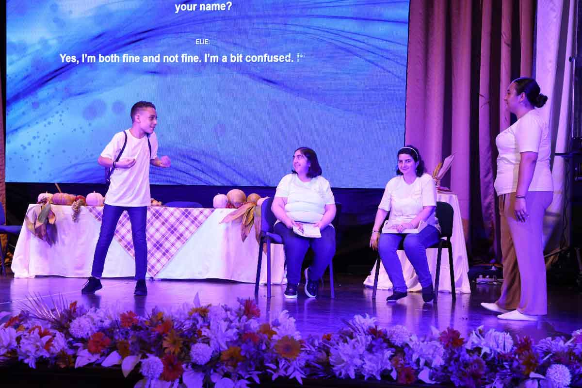Ապա թատերական ներկայացումով աշակերտները ծանօթացուցին ինքնաշարժի նորոգութեան մասնագիտական-վարժողական ծրագիրը, ցուցադրուեցաւ ծրագիրի աշխատանքները ներկայացնող տեսերիզը, եւ աշակերտները պարեցին պար մը: Ցուցադրութիւնները շարունակուեցան նկարչութեան մասնագիտական վարժողական ծրագիրի ծանօթացումով, որմէ ետք խումբ մը աշակերտներ երկու կտաւներու վրայ գծեցին կոճղեր ու կիսատ բուն, որոնք աւարտին պարային ներկայացումի ընկերակցութեամբ միացան եւ կազմեցին ծառ մը: