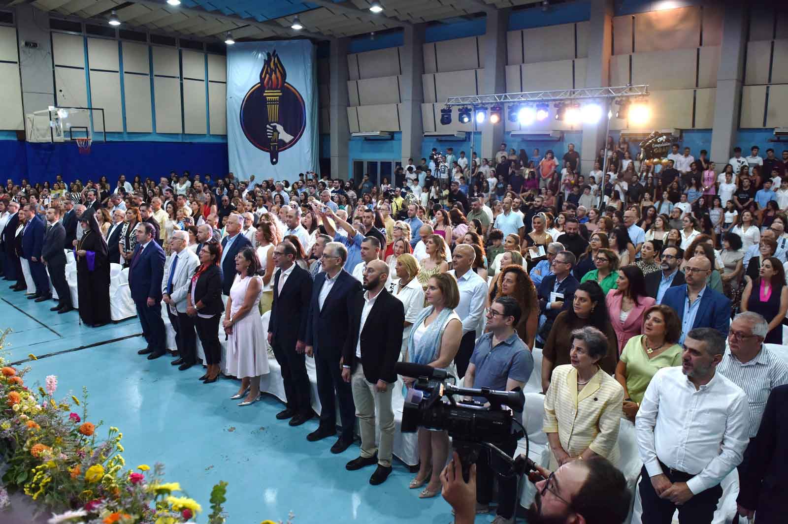 Լիբանանի, Հայաստանի եւ Արցախի քայլերգներու ունկնդրութենէն ետք ներկաները բուռն ծափահարութիւններով ողջունեցին շրջանաւարտները, որոնք հանդիսաւոր կերպով մուտք գործեցին սրահ: