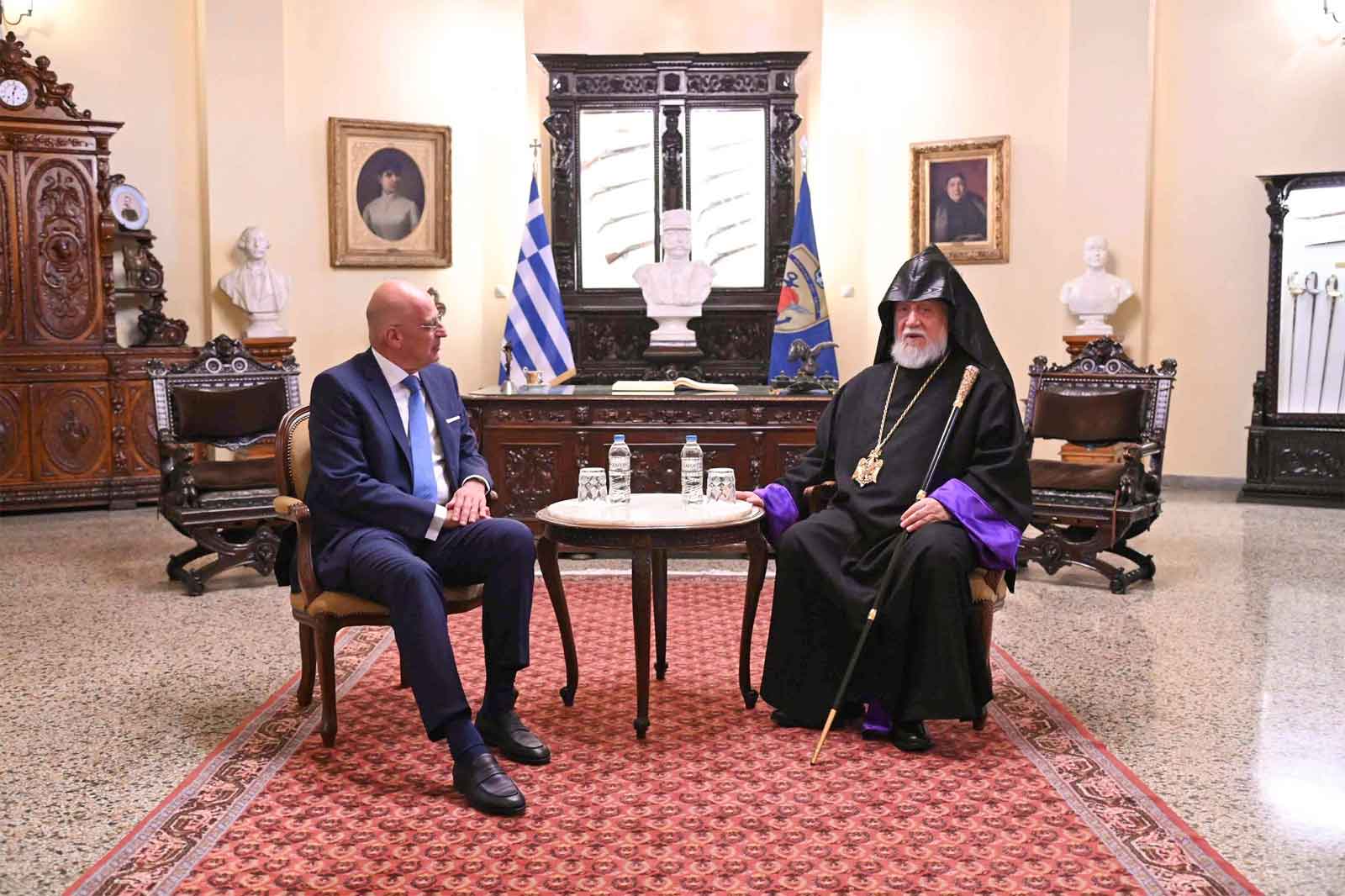 Շաբաթ, 19 յուլիս 2025-ին, Արամ Ա. վեհափառ հայրապետին հետ հեռաձայնային հաղորդակցութեամբ կապ հաստատեց Յունաստանի պաշտպանութեան նախարար Նիքոս Տենտիաս: Վերջինս քանի մը ժամուան այցելութեամբ Լիբանան եկած էր` աշխատանքային հանդիպումներ ունենալու նախագահին, վարչապետին ու պաշտպանութեան նախարարին հետ: