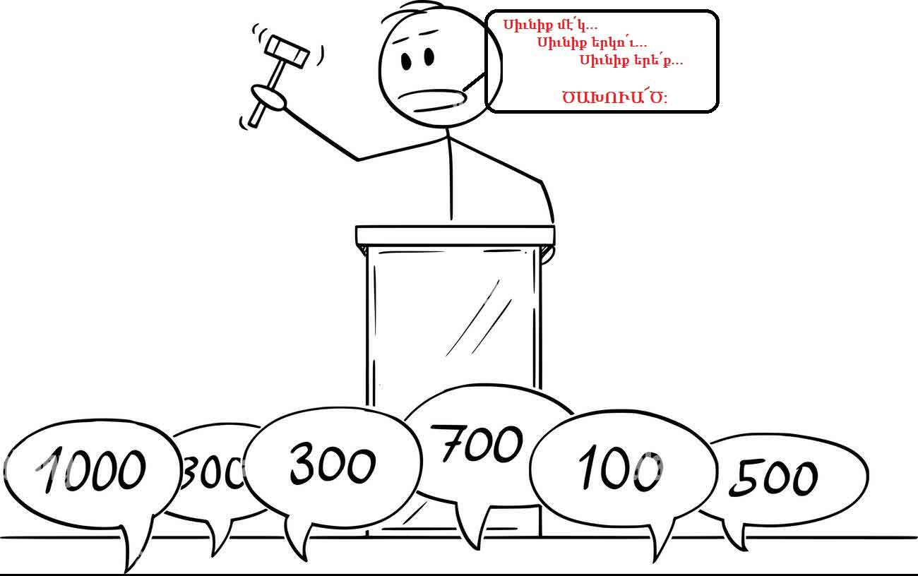 Փաշինեանի խօսքերէն յստակ կը դառնայ, որ «ճամբաներու վերահսկողութիւնը արտապատուիրակելու» հնարքով Սիւնիքը պաշտօնապէս դրուած է աճուրդի (կարեւոր չէ, թէ այս յղացքին գիւտարարը ո՛վ է): Մարդը կ՛ըսէ, որ, «էսդի համեցէք»-ի տրամաբանութեամբ` մենք դրամ չունինք երկաթուղին կառուցելու, իսկ արաբական եւ այլ երկիրներ շահագրգռութիւն ցոյց կու տան, այսինքն ո՛վ որ աւելի մեծ գումար տայ Երեւանի իշխանաւորներուն, կրնայ իրականացնել թրքերէնէ փոխադրեալ սա խօսքը. «Դրամ տուողը սուլիչը կը փչէ(*)»: Հարց է, թէ աճուրդին կազմակերպումը պիտի վստահուի «Սոթըպիզ»-ի՞ն, թէ՞ «Քրիսթիզ»-ին…