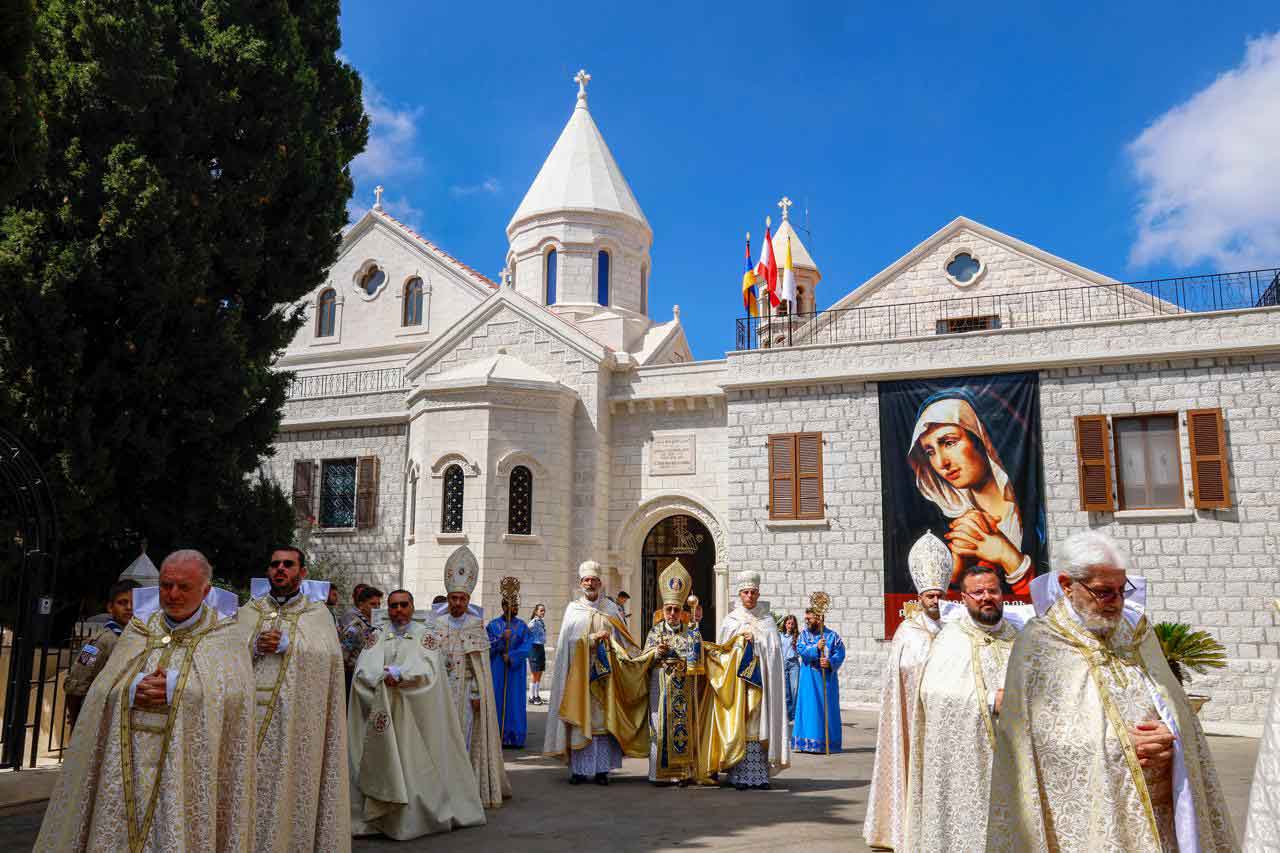 Նախագահութեամբ Հայ կաթողիկէ Ռաֆայէլ Պետրոս ԻԱ. կաթողիկոս պատրիարքին, հայրապետական փառաշուք թափօրի շքախումբը` կազմուած վանաբնակ եպիսկոպոսներէ, վանքի վարչական հայրերէ, միաբան վարդապետներէ, Պէյրութի պատրիարքական թեմի հոգեւորականներէ, ժառանգաւորներէ եւ նորընծաներէ ՀԿՄ-ի շեփորախումբին նուագակցութեամբ, վեհարանէն ուղղուեցաւ դէպի Ս. Իգնատիոս Մալոյեան ամփիթատրոն, ուր «Հրաշափառ»-ի երգեցողութեամբ ընթացք առաւ Ս. պատարագը, զոր մատուցեց պատրիարք հայրը` առընթերակայութեամբ հայր Նարեկ Լուիսեանի եւ հայր Տիգրան Փիլիպոսեանի: