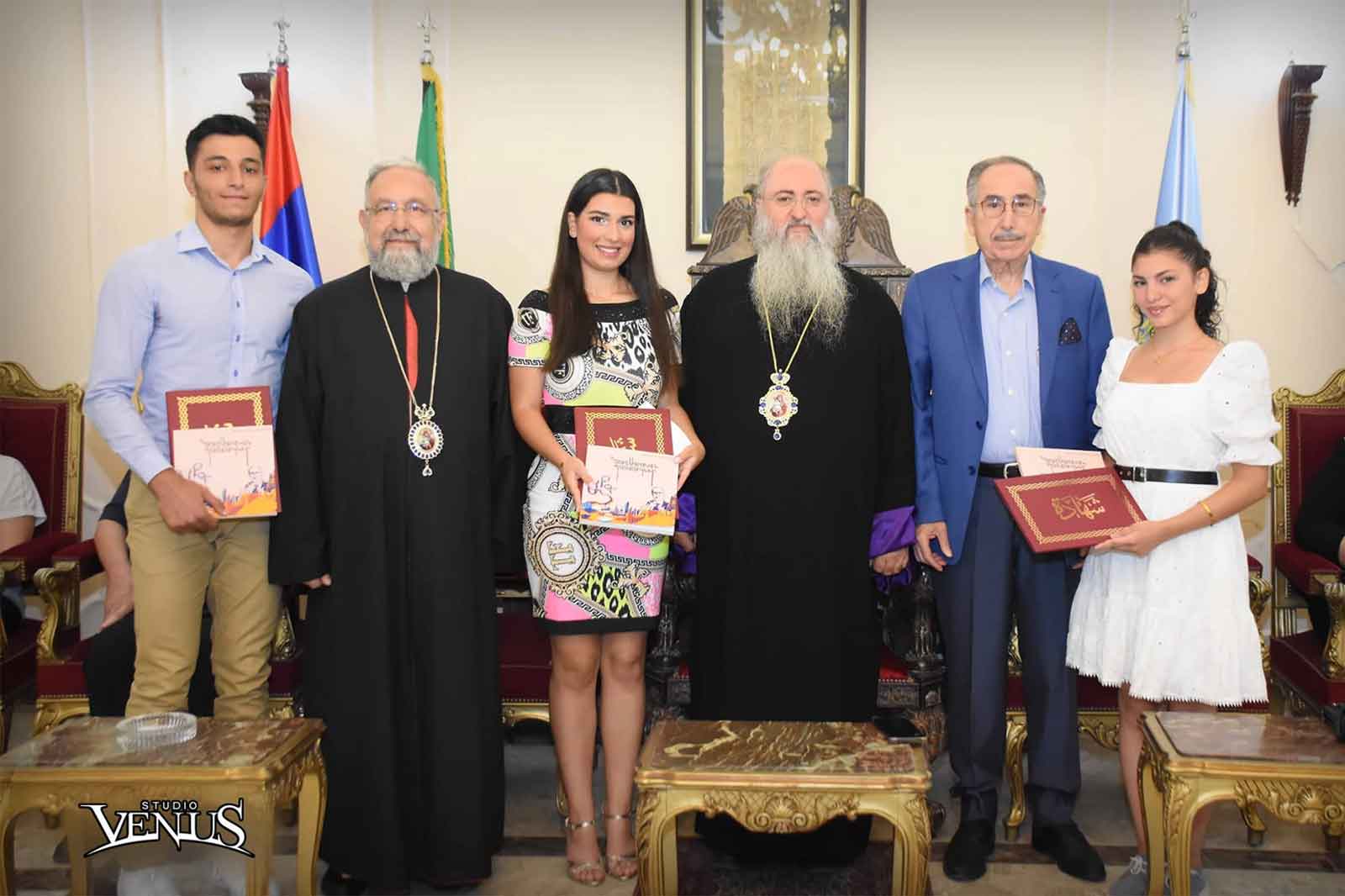 Սրբազան հօր կողքին ներկայ գտնուեցան Բերիոյ Թեմի Կաթողիկէ Հայոց Առաջնորդ Արհիապատիւ Տ. Պետրոս Արք. Միրիաթեան, Ազգ. Վարչութեան ատենապետ Ժիրայր Րէիսեան եւ Ազգ. Վարչութեան անդամներ, քուէթահայ բարերար տէր եւ տիկին Կիրակոս Գույումճեան եւ իրենց դուստրն ու հարազատները, Ուսումնական Խորհուրդի անդամներ, հալէպահայ երկրորդական վարժարաններու հոգաբարձութիւններու եւ կրթական մարմիններու ներկայացուցիչներ, տնօրէններ, մրցանակին արժանացող ուսանողներն ու իրենց ծնողները։